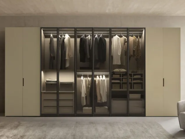 - Cam Kapaklar: Şeffaf veya füme cam kapaklar, dolap içindeki düzeni sergileyerek şık bir butik atmosferi yaratır. Özellikle aydınlatma ile birleştirildiğinde, dolabınızın içindeki eşyalar adeta bir sergiye dönüşür.